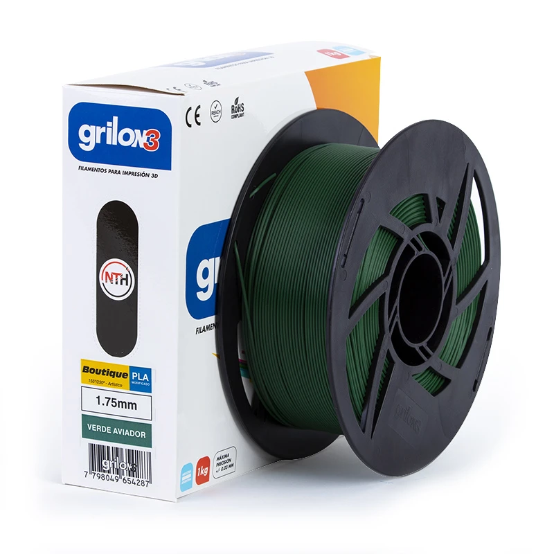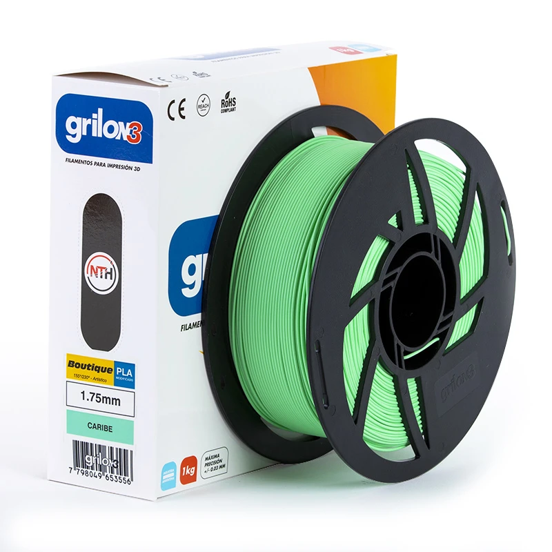 Boutique-PLA modificado. Un desarrollo de NTH que ofrece amplio rango térmico en la impresión, con multiplicidad de acabados, disimulado de capas y una base satinada que permite colores y texturas especiales.